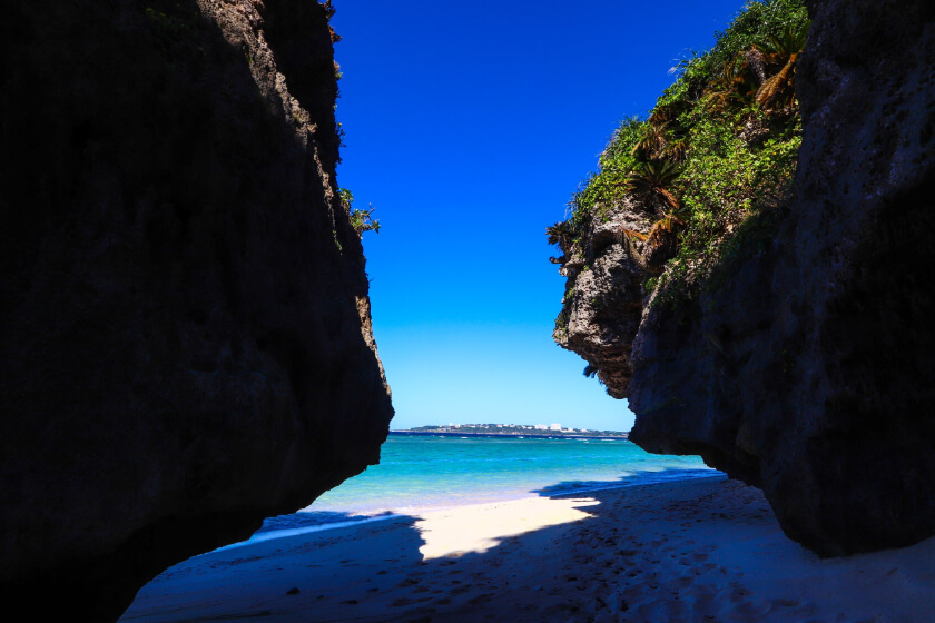 少し歩くと岩場もあり、フォトジェニックなスポットも豊富。ウェディングフォトでも人気のビーチです。