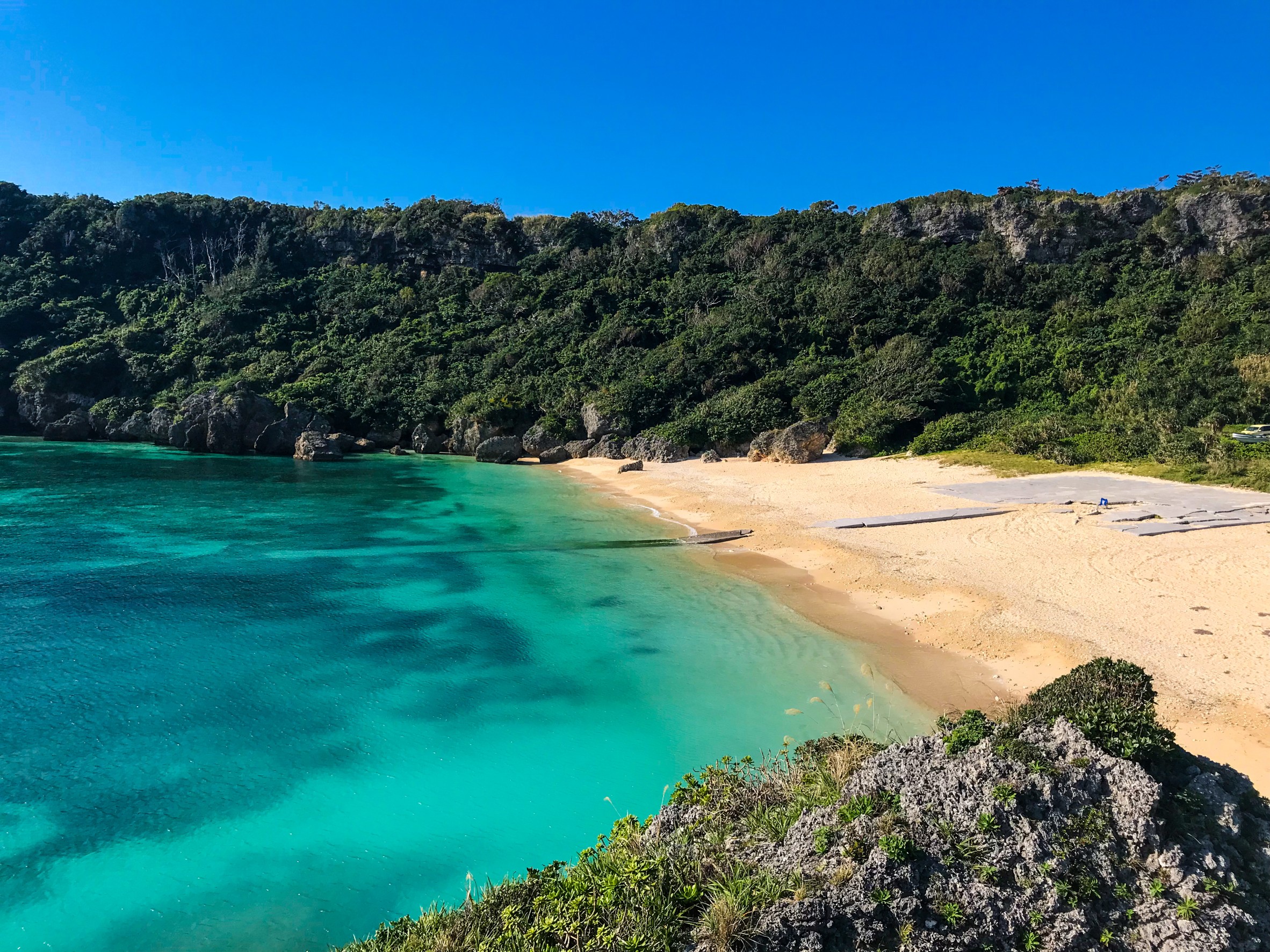 ウクの浜は、車で行ける離島「宮城島」にある天然ビーチです。